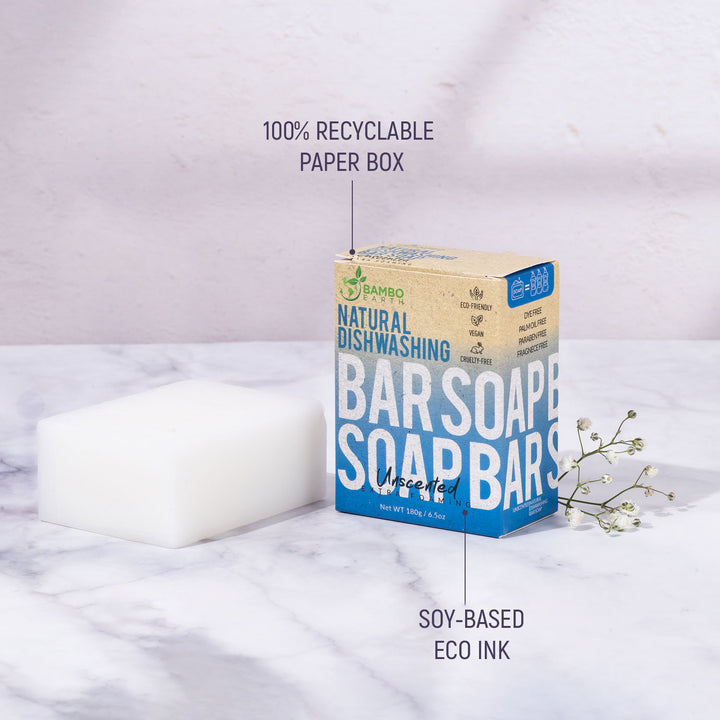 Our solid dish soap is plant-based, vegan, and completely plastic-free. It creates a rich, foamy lather that effectively cuts through grease and grime on dishes, pots, and pans — even in cold or hard water.