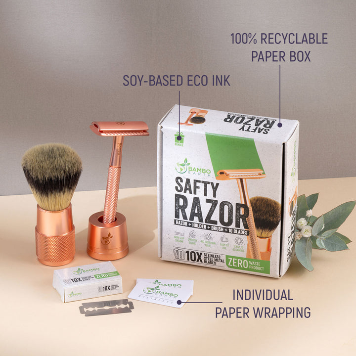 Each razor comes with a compact pack of 10 stainless steel replacement blades, making it a sustainable and durable alternative to disposable plastic razors.